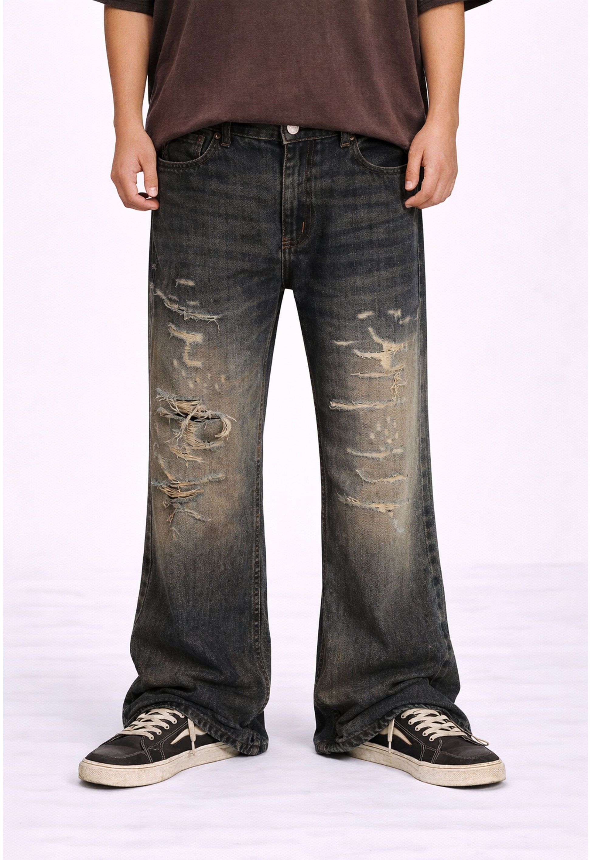 Our Classic Distressed Denim is designed with a relaxed fit, featuring heavyweight denim, a sand-washed distressed finish, and subtle fraying for a vintage, worn-in aesthetic.