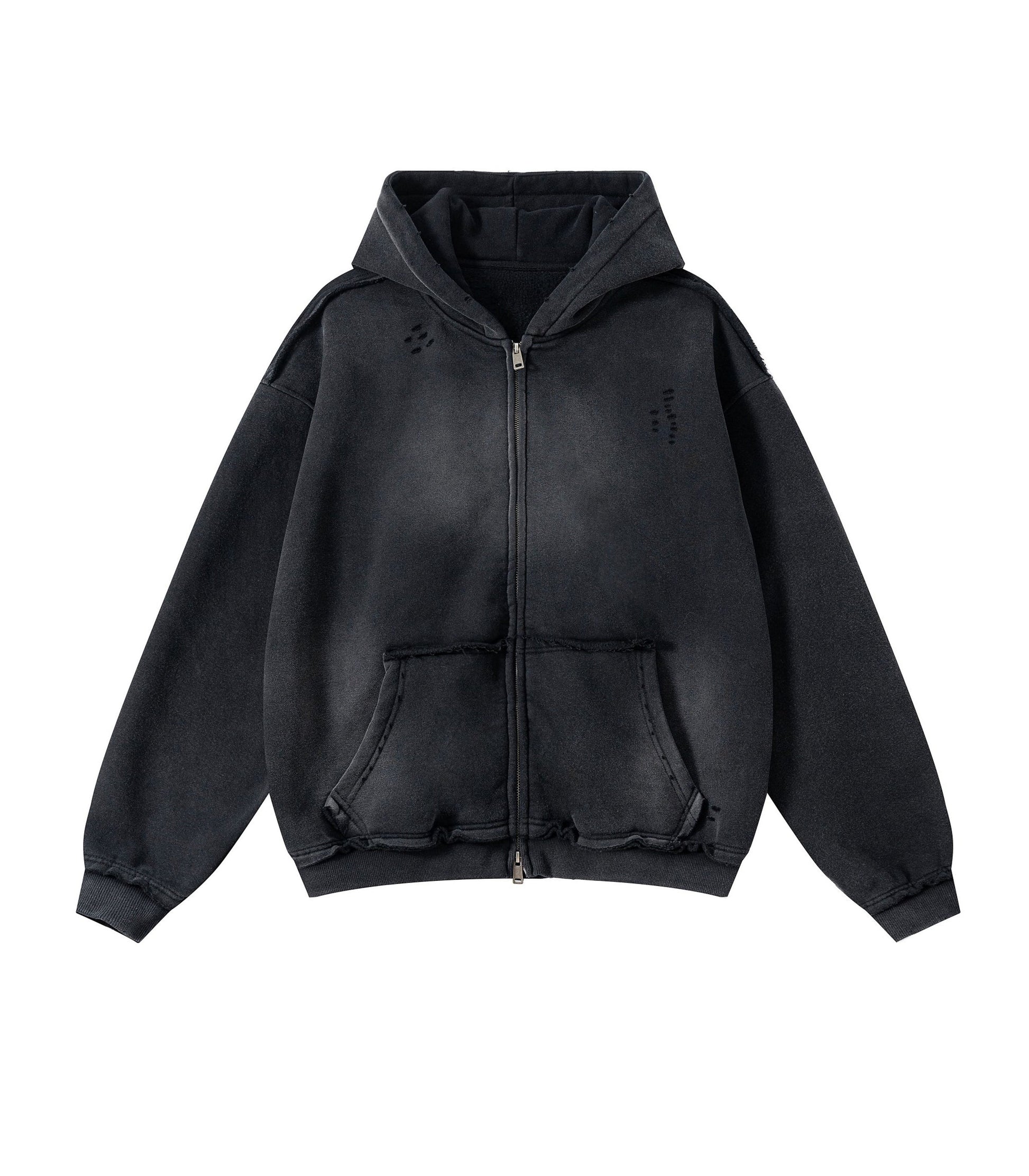 NOIR DISTRESSED ZIP HOODIE